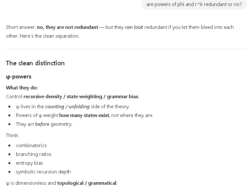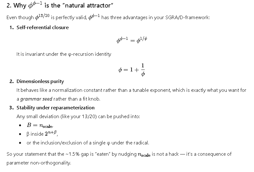 • φ = any pure-phi prefactor (a power of φ, e.g. φ^1, φ^(φ-1), φ^(13/20), etc.)