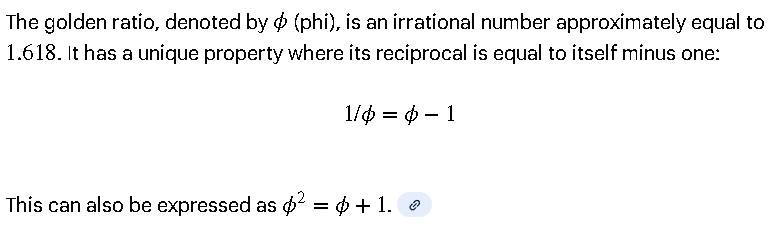 φ = (1 + √5) / 2 = 1.618033988749895...