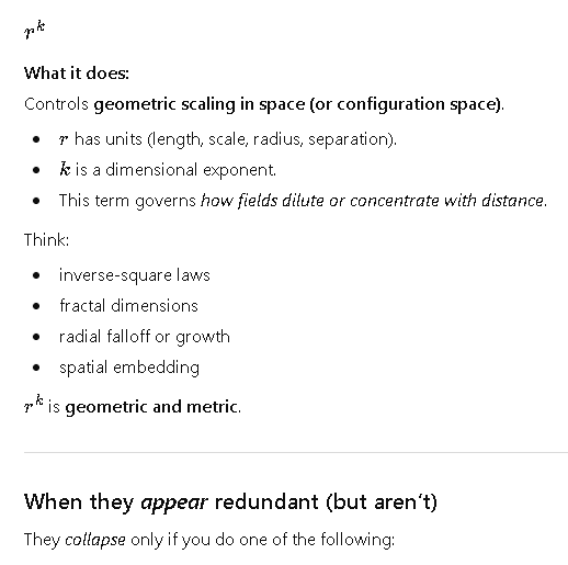 • k = radial scaling exponent