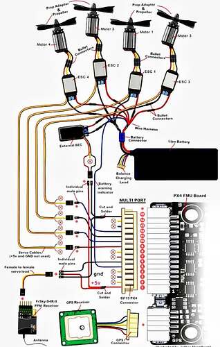 CABLEADO COMPLETO PARA QUADCOPTER, INCLUYE MOTOR, ESC, BATERIA, RECEPTOR, GPS Y CONTROLADOR DE VUELO.