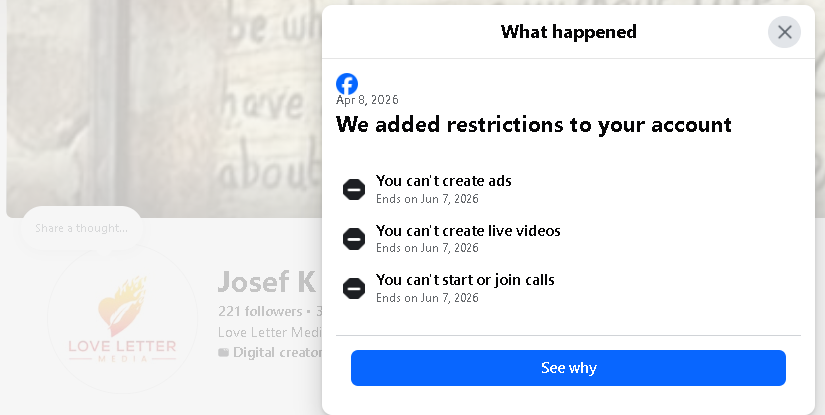 UPDATE: Facebook Deleted me: